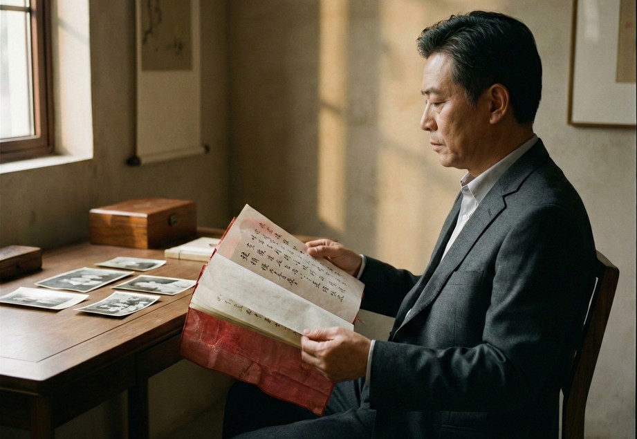 Entre papéis velhos e fotografias amareladas, Rodrigo encontrou um manuscrito. Páginas de papel de arroz, ideogramas desenhados à mão, séculos de sabedoria embrulhados em seda vermelha.
